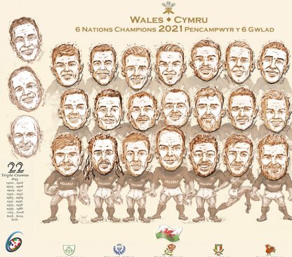 Championship print in progress! Only a few more characters to draw, then colouring up! Magnificent Scotland, such a closely fought Guiness 6 Nations, only a few points separating the top 3 teams. The Scots deserved better, but thanks for the great Championship for Wales! That’s 22 Tripple Crowns – Cymru am Byth! www.ruglys.co.uk