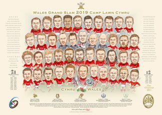 Commemorating the momentous Wales Rugby Union team victory over France, Italy, England, Scotland and Ireland in the 2019 Six Nations Tournament securing the 4th Welsh Grand Slam, 4th clean sweep and Wales’ 4th Triple Crown and Six Nations championship of the Millennium. Wales captain Alun Wyn Jones achieved 125 caps and is among a very exclusive group of Wales players to have won 4 Championships, 3 Triple Crowns and 3 Grand Slams making this the 4th Welsh team of the millennium to become 6 Nations European Champions. Warren Gatland celebrates his final match as Wales 6 Nations head coach achieving Wales’ 3rd Grand Slam a coaching record – leading Wales onto the World Cup tournament in Japan.