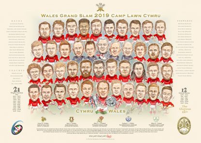 Commemorating the momentous Wales Rugby Union team victory over France, Italy, England, Scotland and Ireland in the 2019 Six Nations Tournament securing the 4th Welsh Grand Slam, 4th clean sweep and Wales’ 4th Triple Crown and Six Nations championship of the Millennium.